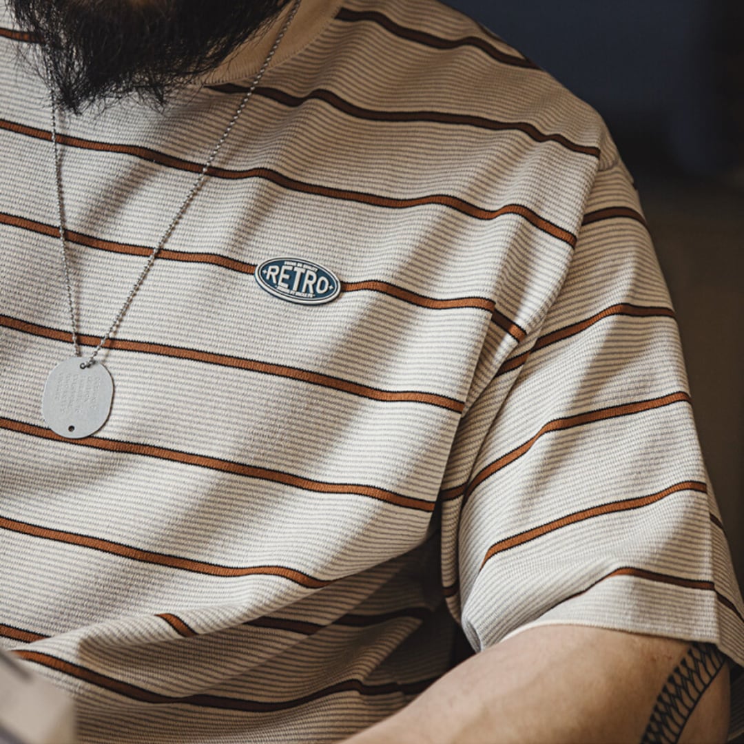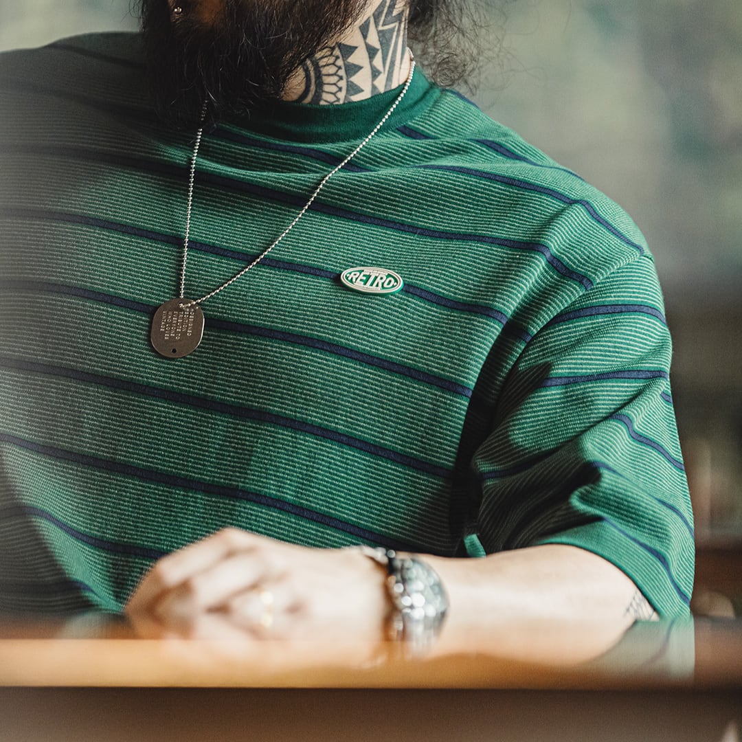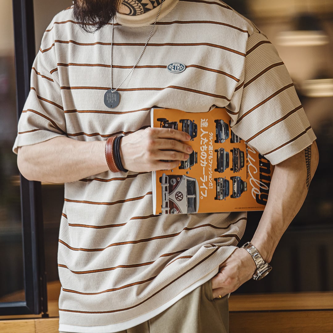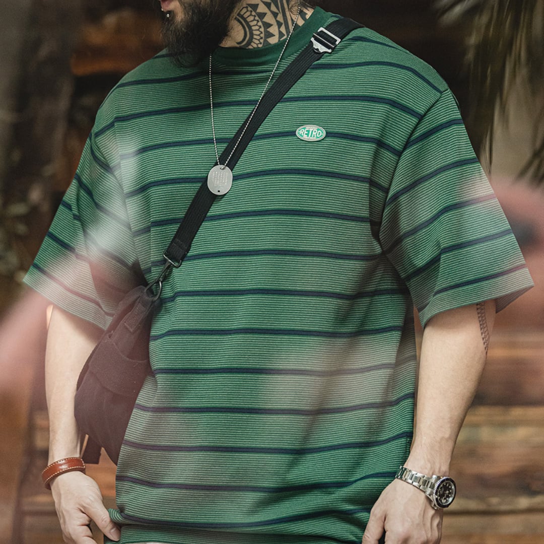 爽やかな着心地のボーダー柄半袖クルーネックTシャツ。