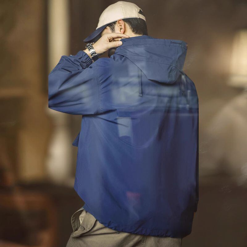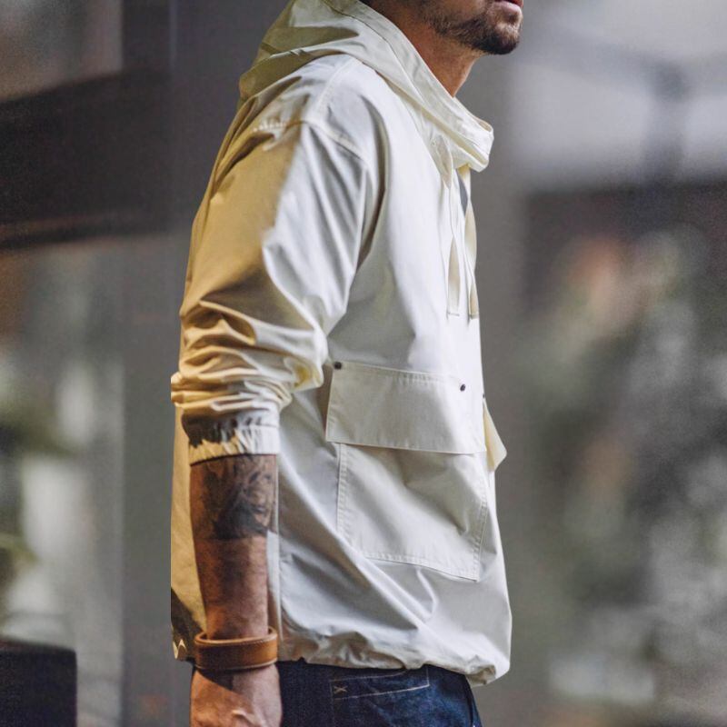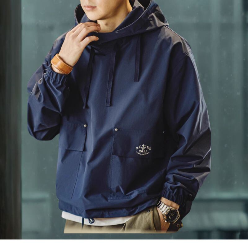 フード付きのドロップショルダープルオーバーパーカーは、ゆったりとしたシルエットと程よくカジュアルなデザインが魅力です。