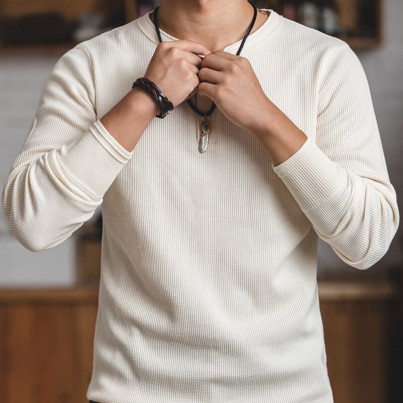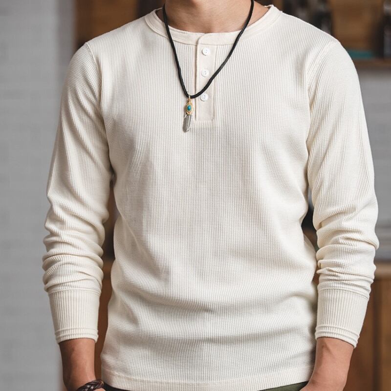 ヘンリーネックリブ編みロングスリーブシャツA18263