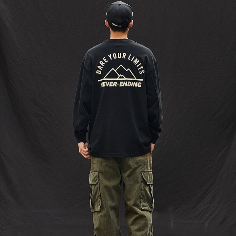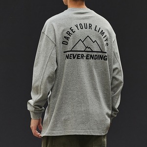 マウンテンプリントが目を惹く、クルーネックカジュアルTシャツです。