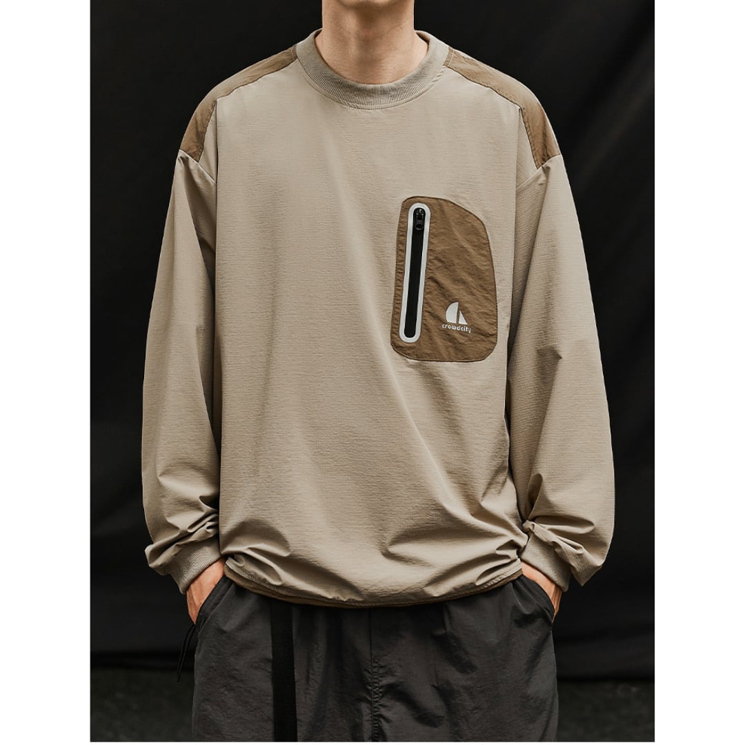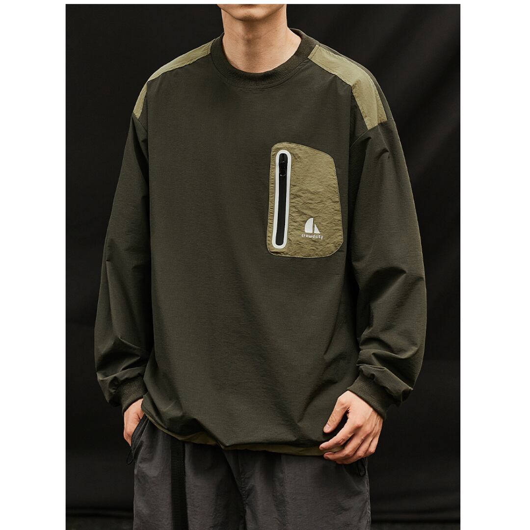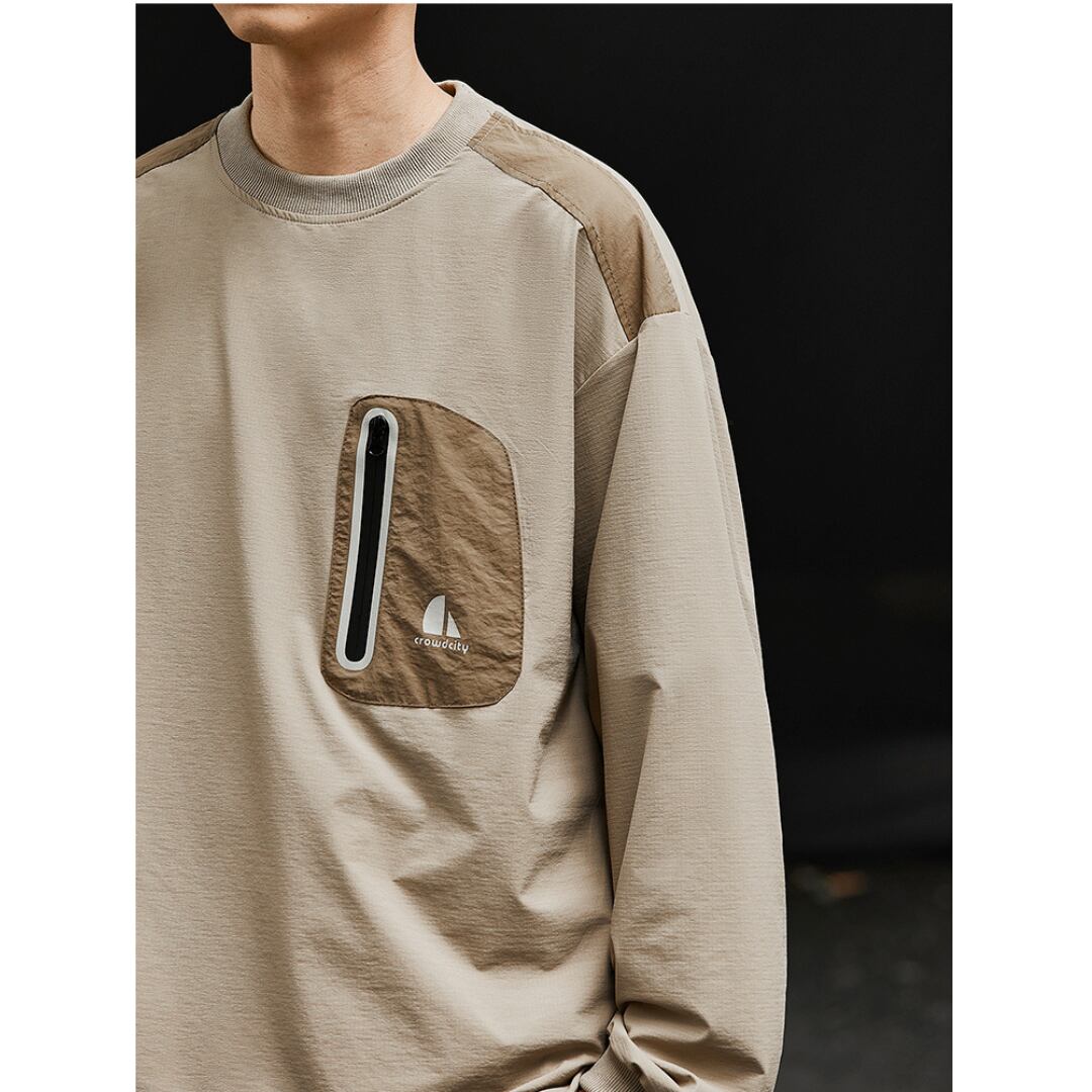 配色切り替えがポイントのロングスリーブクルーネックトップス。落ち着いたカラーリングと、さりげないデザインのポケットが、どんなスタイルにも合わせやすいアイテムです。普段使いはもちろん、休日のお出かけなど、様々なシーンで活躍します。着回し力抜群で、ワードローブに一つあると重宝すること間違いなしです。
