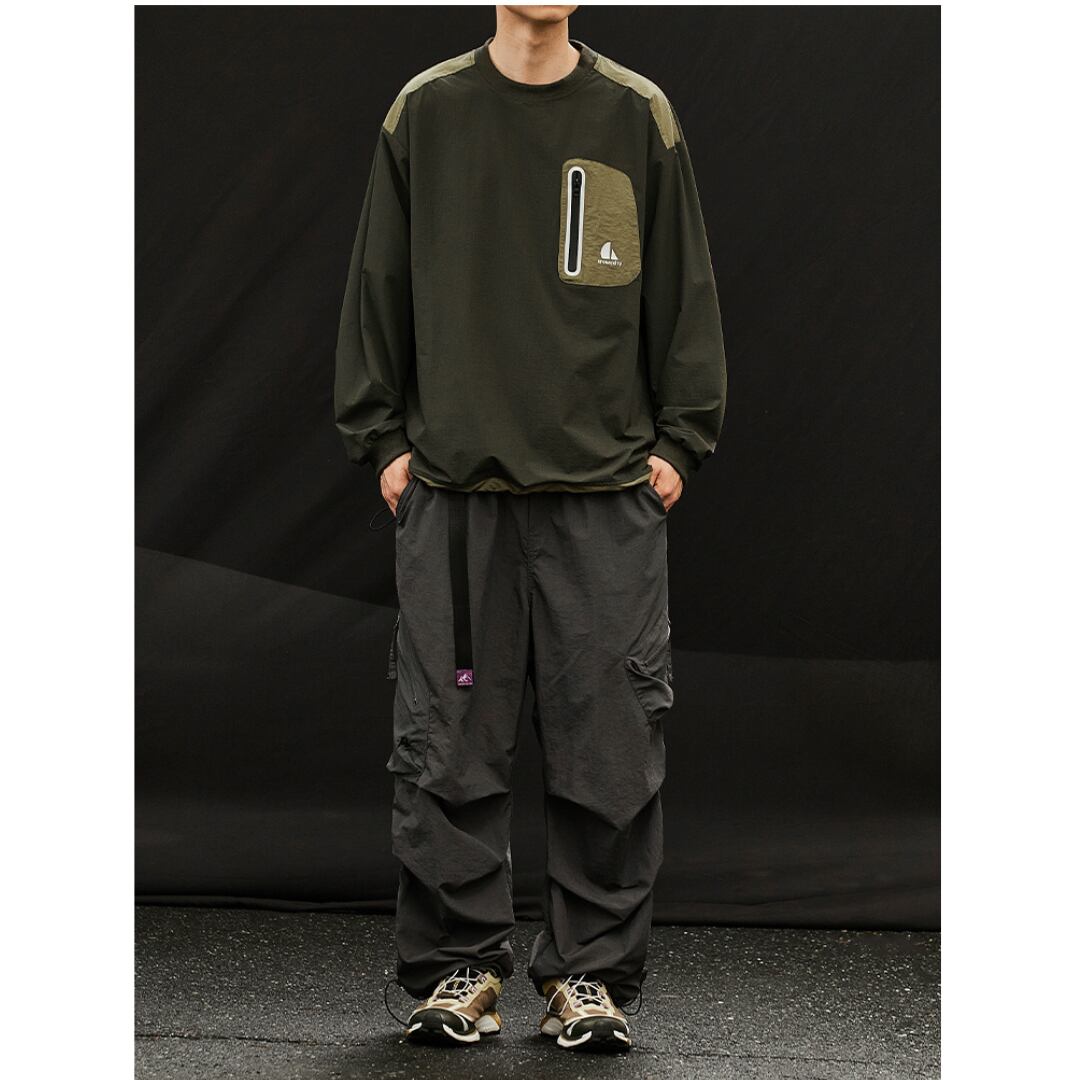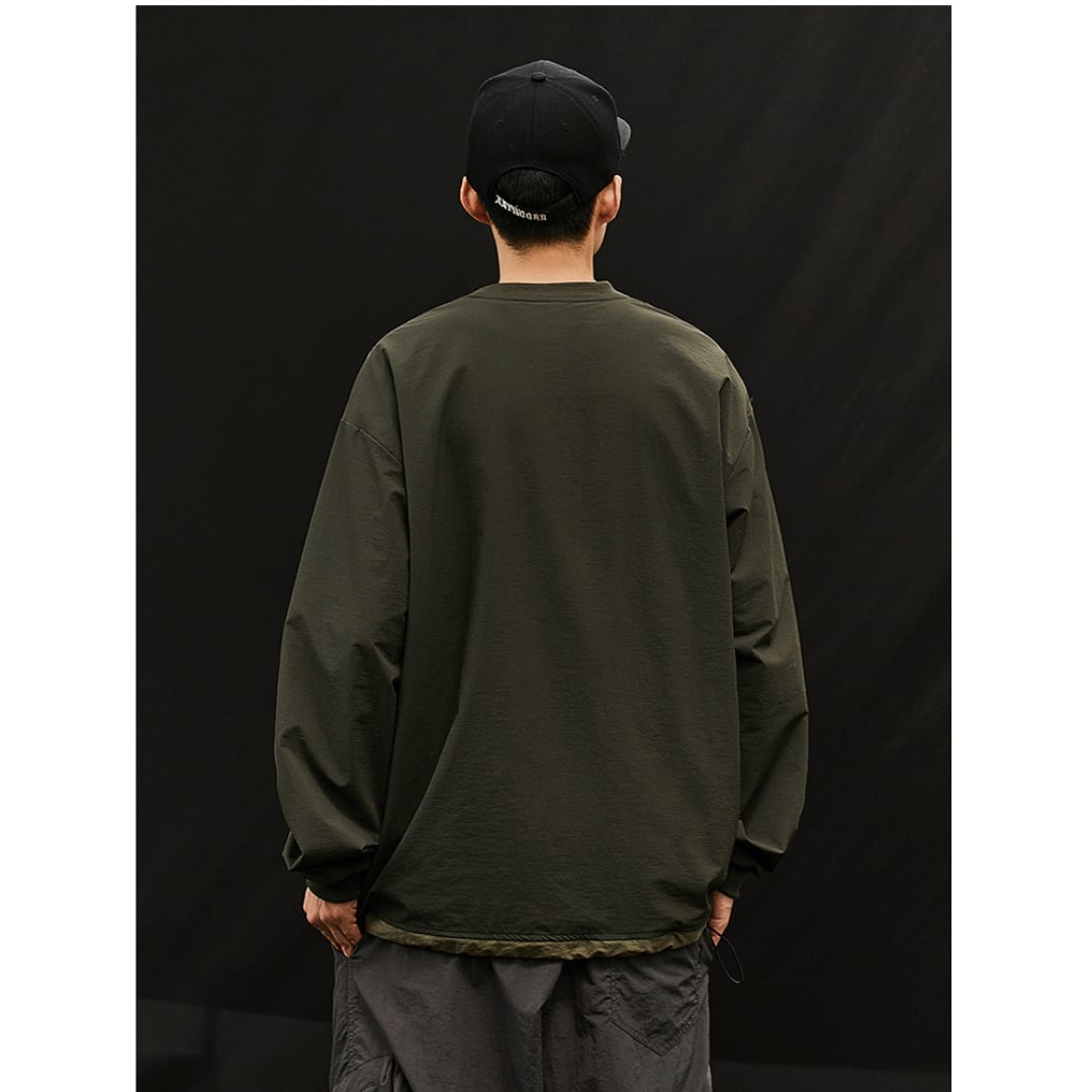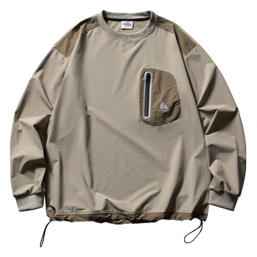 配色切り替えがポイントのロングスリーブクルーネックトップス。落ち着いたカラーリングと、さりげないデザインのポケットが、どんなスタイルにも合わせやすいアイテムです。普段使いはもちろん、休日のお出かけなど、様々なシーンで活躍します。着回し力抜群で、ワードローブに一つあると重宝すること間違いなしです。