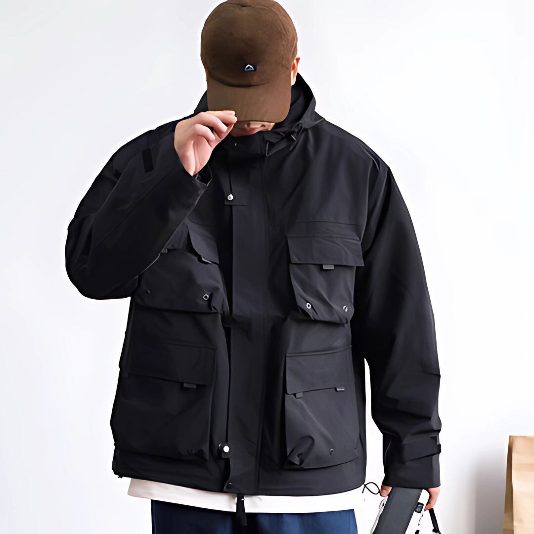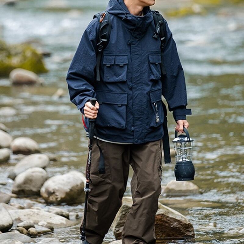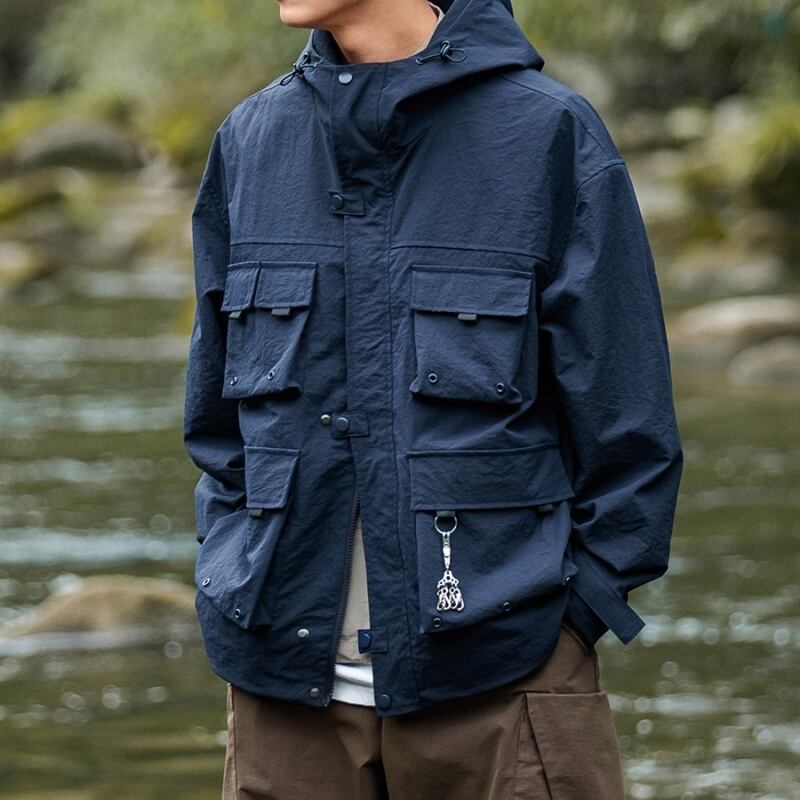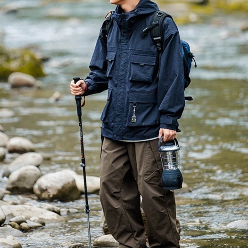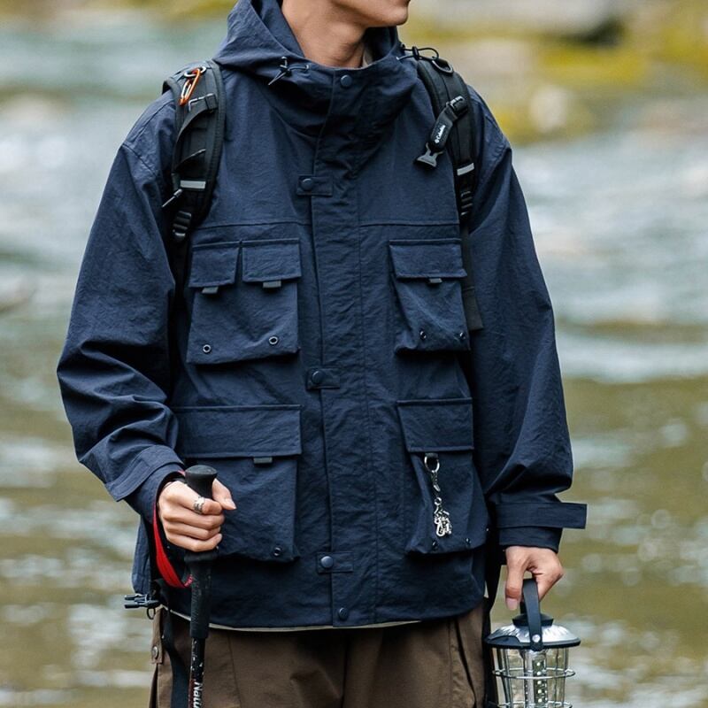 撥水加工が施された、マルチポケット付きフードジャケットです。