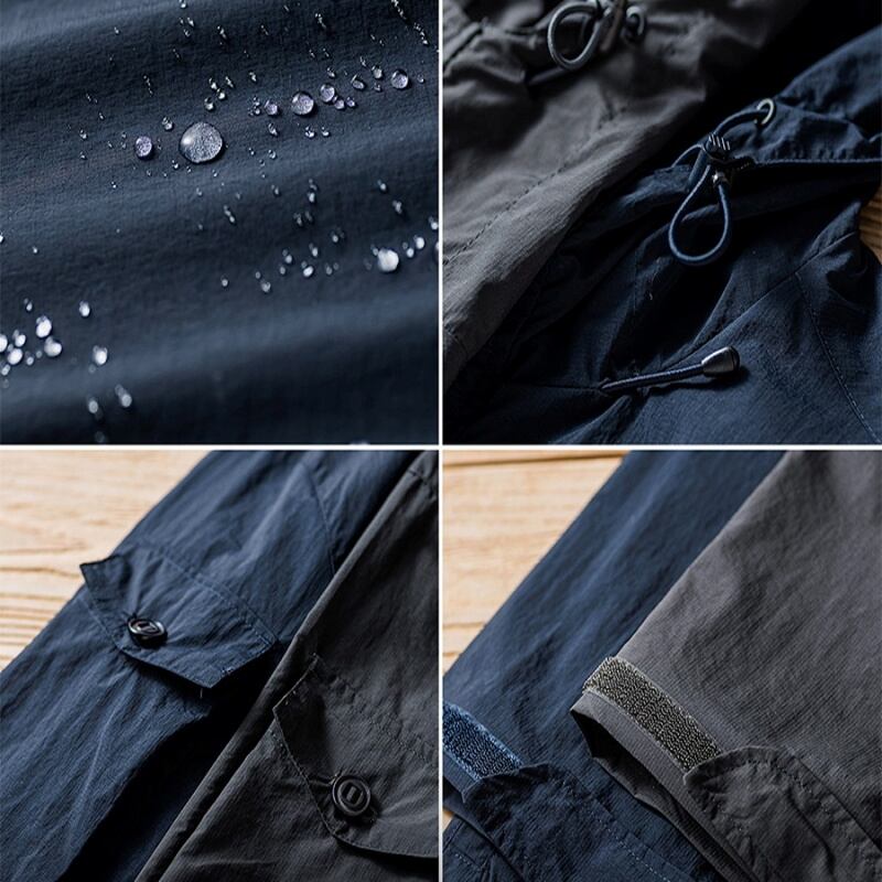 急な雨にも慌てない!防水加工を施したフーデッドジャケットです。