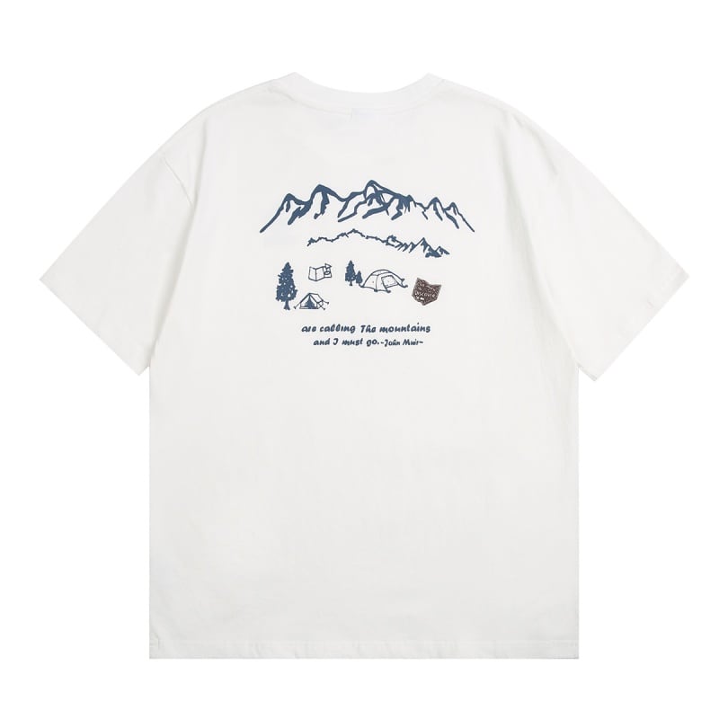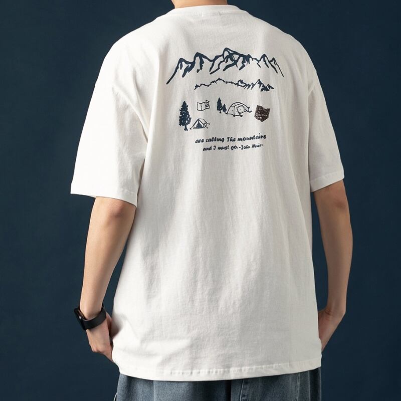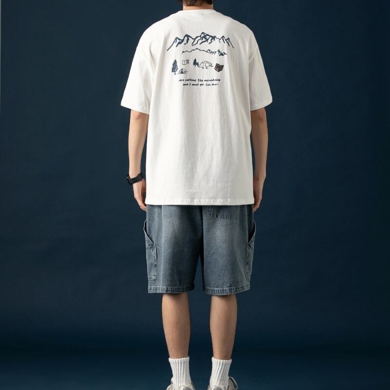バックプリントが目を引くクルーネック半袖Tシャツです。