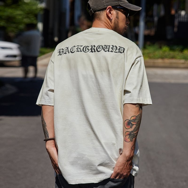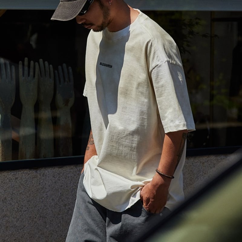 オーバーサイズでゆったりとしたシルエットが魅力のレタープリントTシャツです。