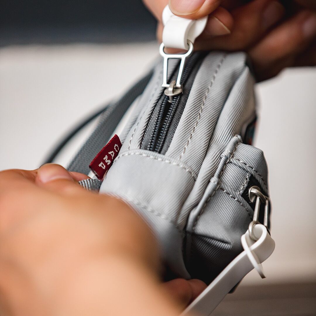 カードや鍵が収納できるサイズ感で、ジッパーも摘まみやすいデザインにこだわっています。