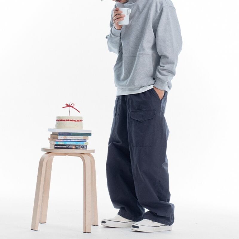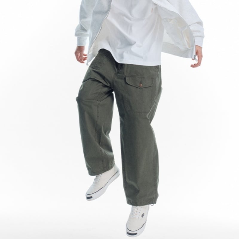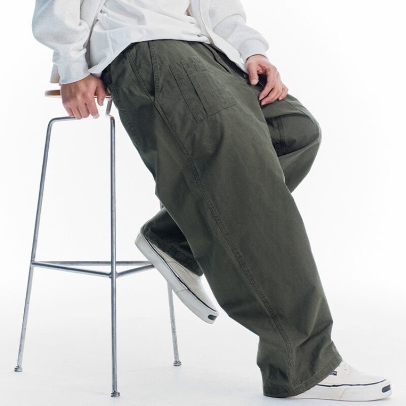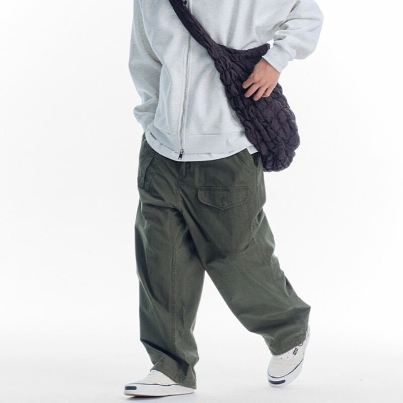 ウォッシュ加工がヴィンテージライクなワイドレッグカジュアルパンツです。