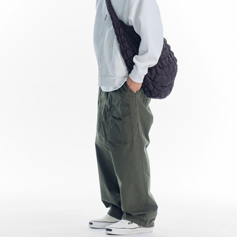 ウォッシュ加工ワイドレッグカジュアルパンツA18483