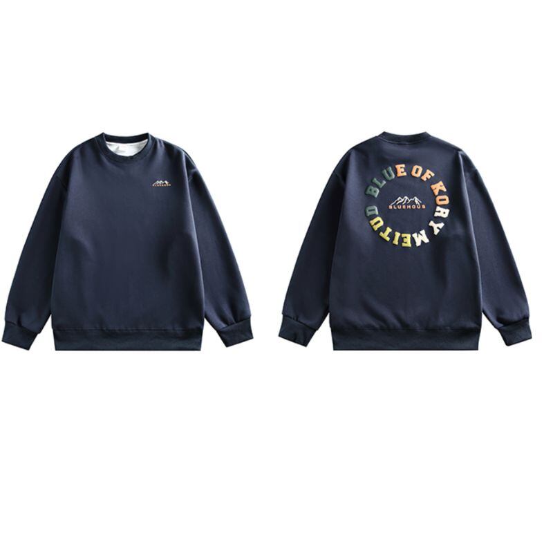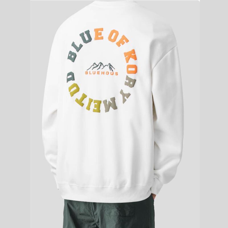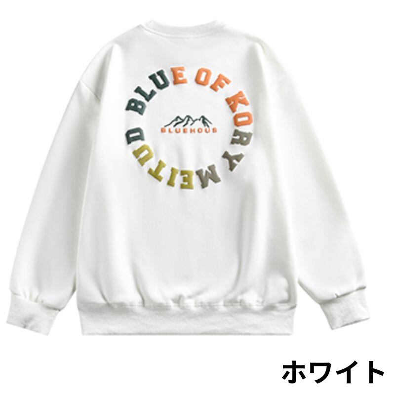 バックプリントが目を惹くクルーネックの長袖スウェットシャツ。シンプルながらも存在感のあるデザインで、普段使いからちょっとしたお出かけまで幅広く活躍します。