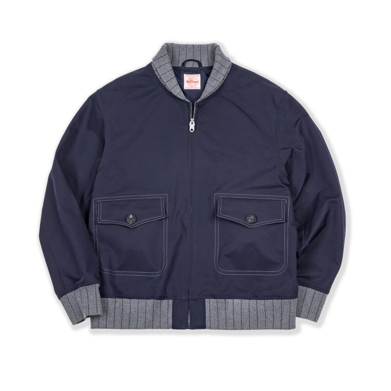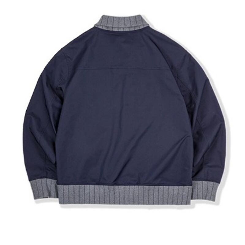スタンドカラーとリブニット切替が、上品さとカジュアルさを両立。