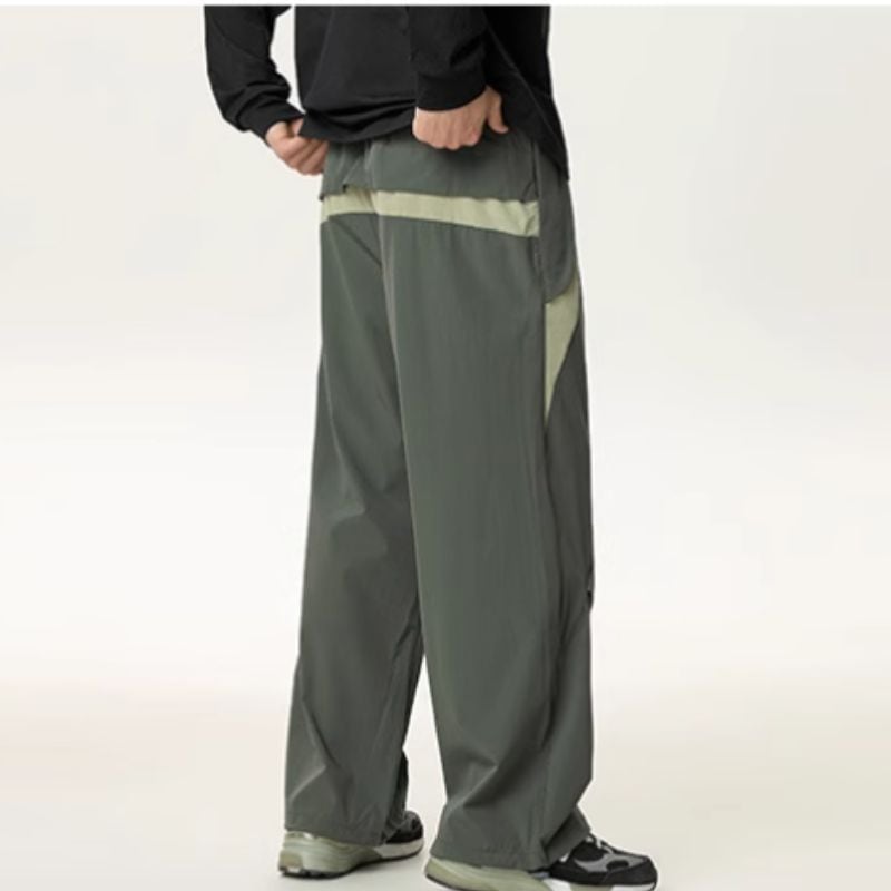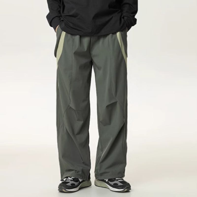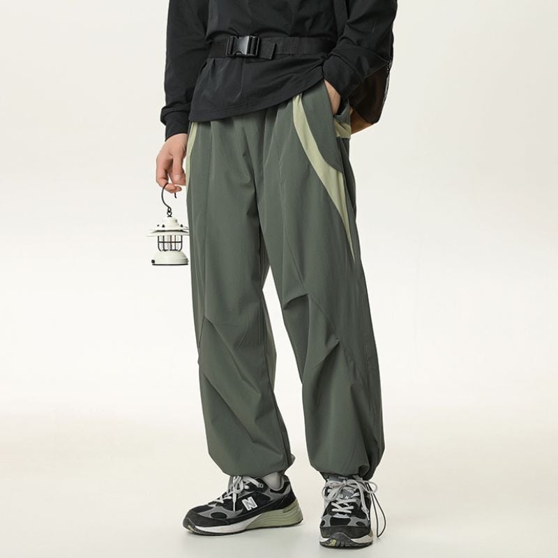 切り替えデザインが目を惹く、ドローコードテーパードワイドパンツ。