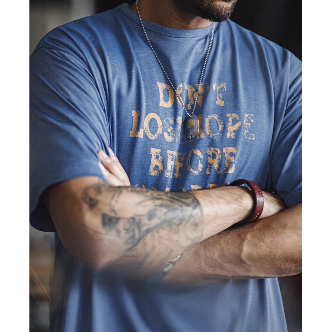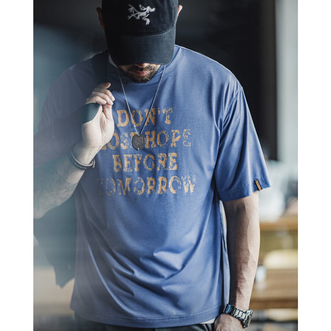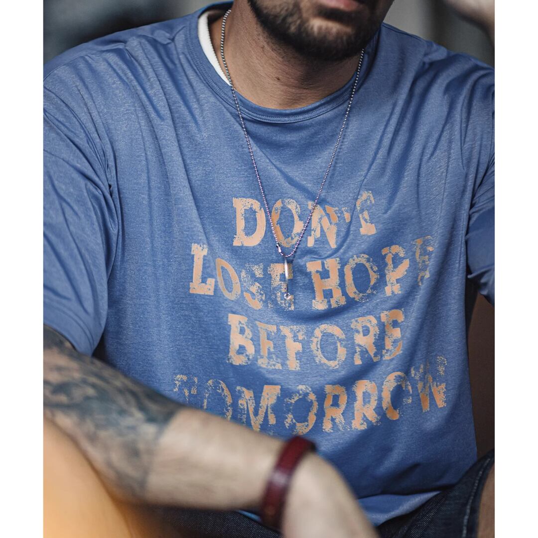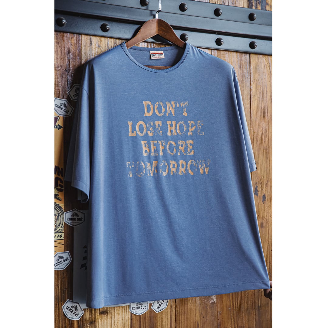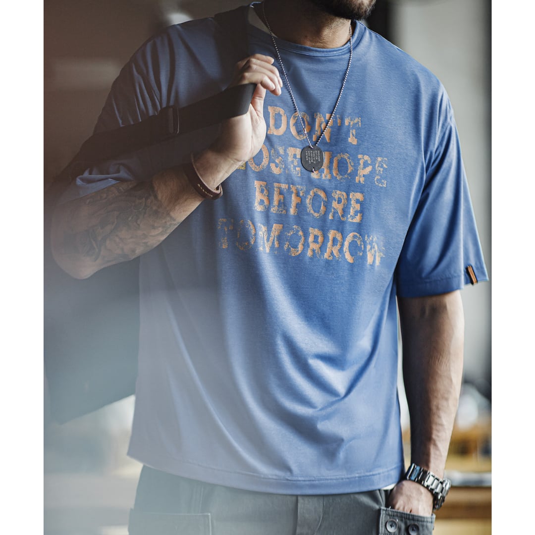 着回し力抜群のクルーネック半袖Tシャツ。程よくゆとりのあるボックスシルエットが、体型を気にせずリラックスして着こなせます。メッセージプリントが、さりげないアクセントに。