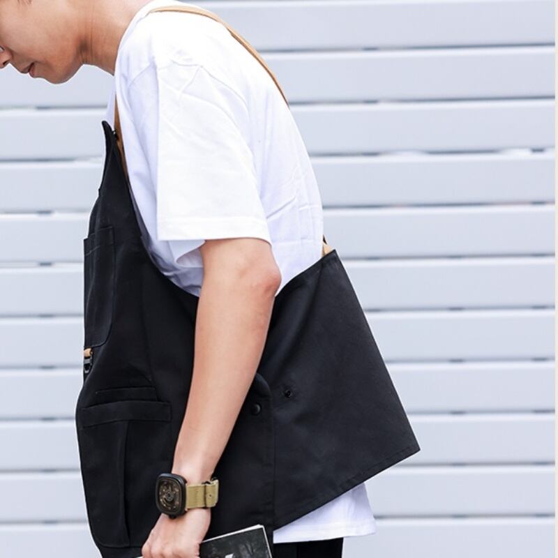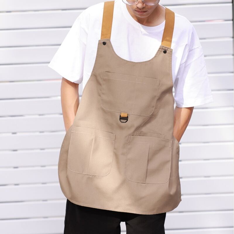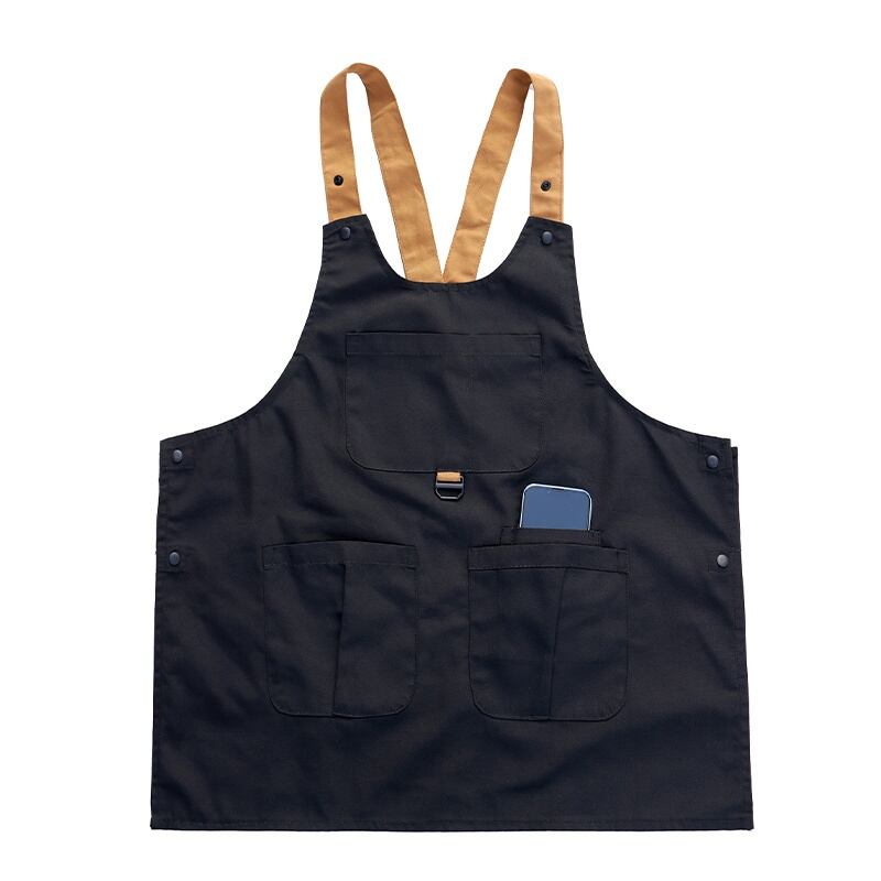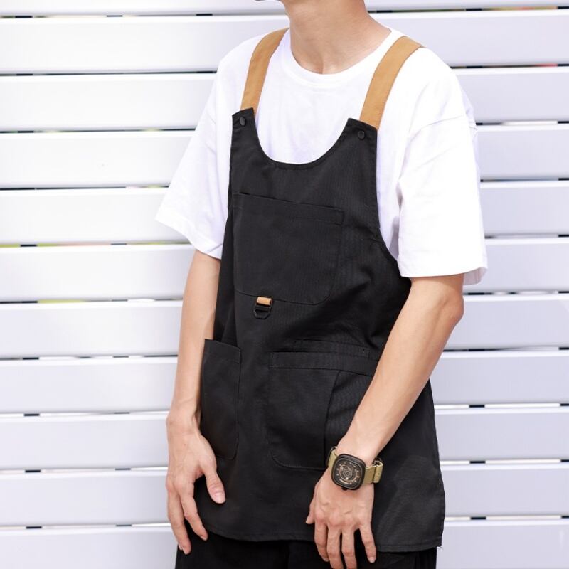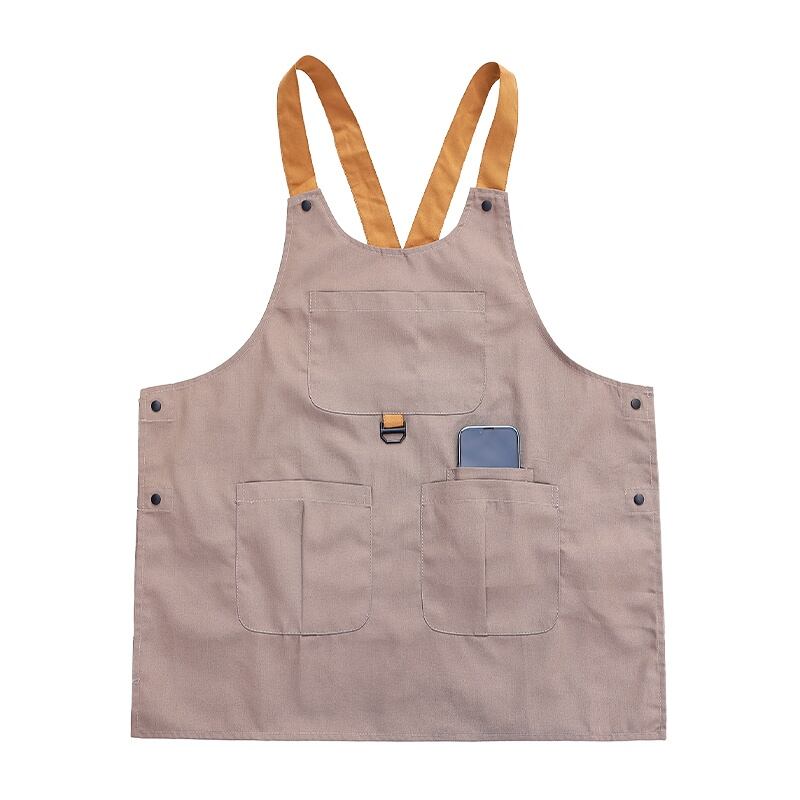 調節できるストラップと3列のサイドスナップボタンで、お好みに合わせてエプロンのシルエットを調整できます。