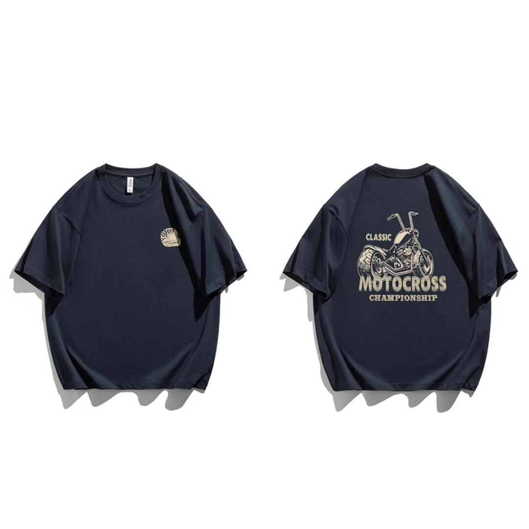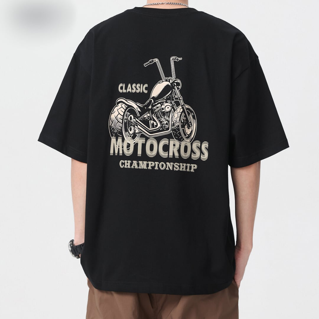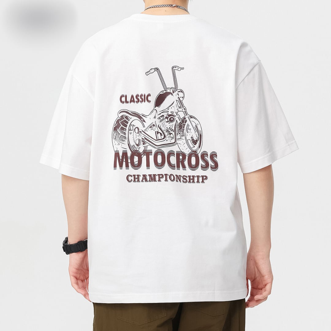 クラシカルバイク柄Tシャツ 4XLまで対応 A18407