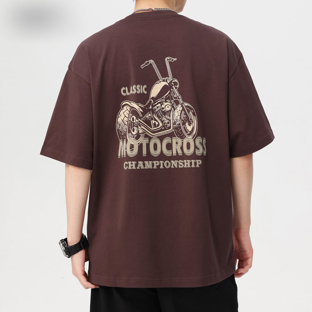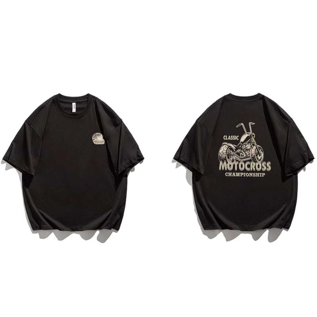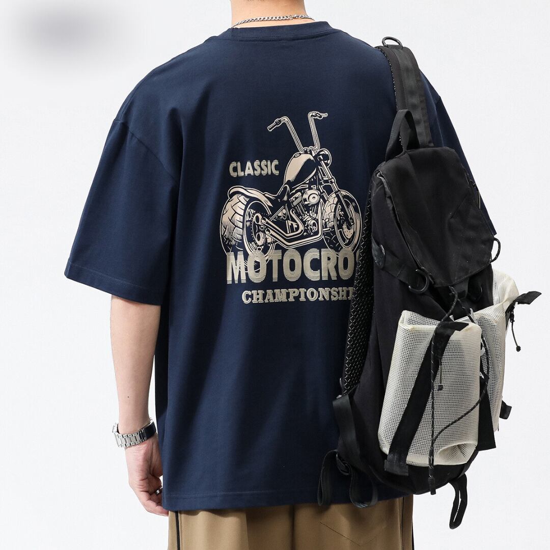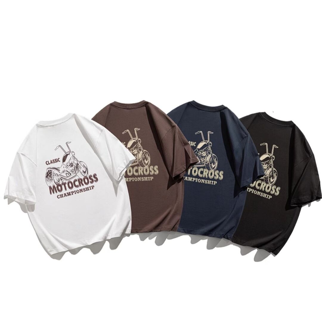 クラシカルバイク柄Tシャツ 4XLまで対応 A18407