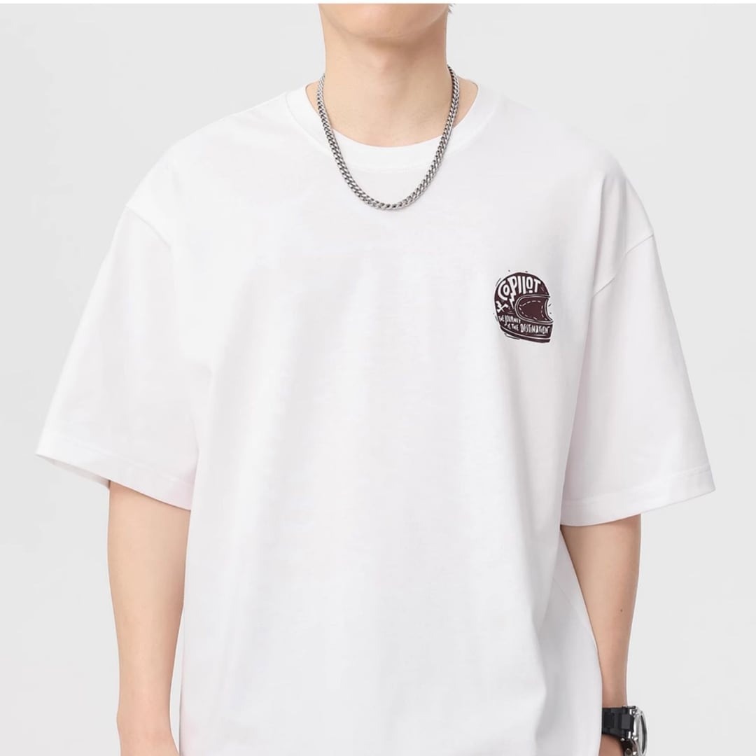 フロントの控えめなロゴとバックプリントが目を惹くTシャツ。